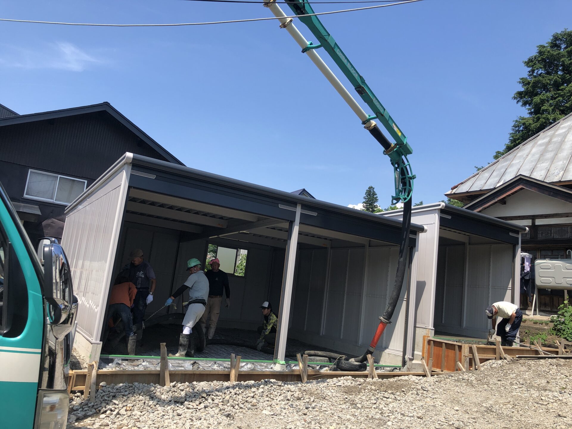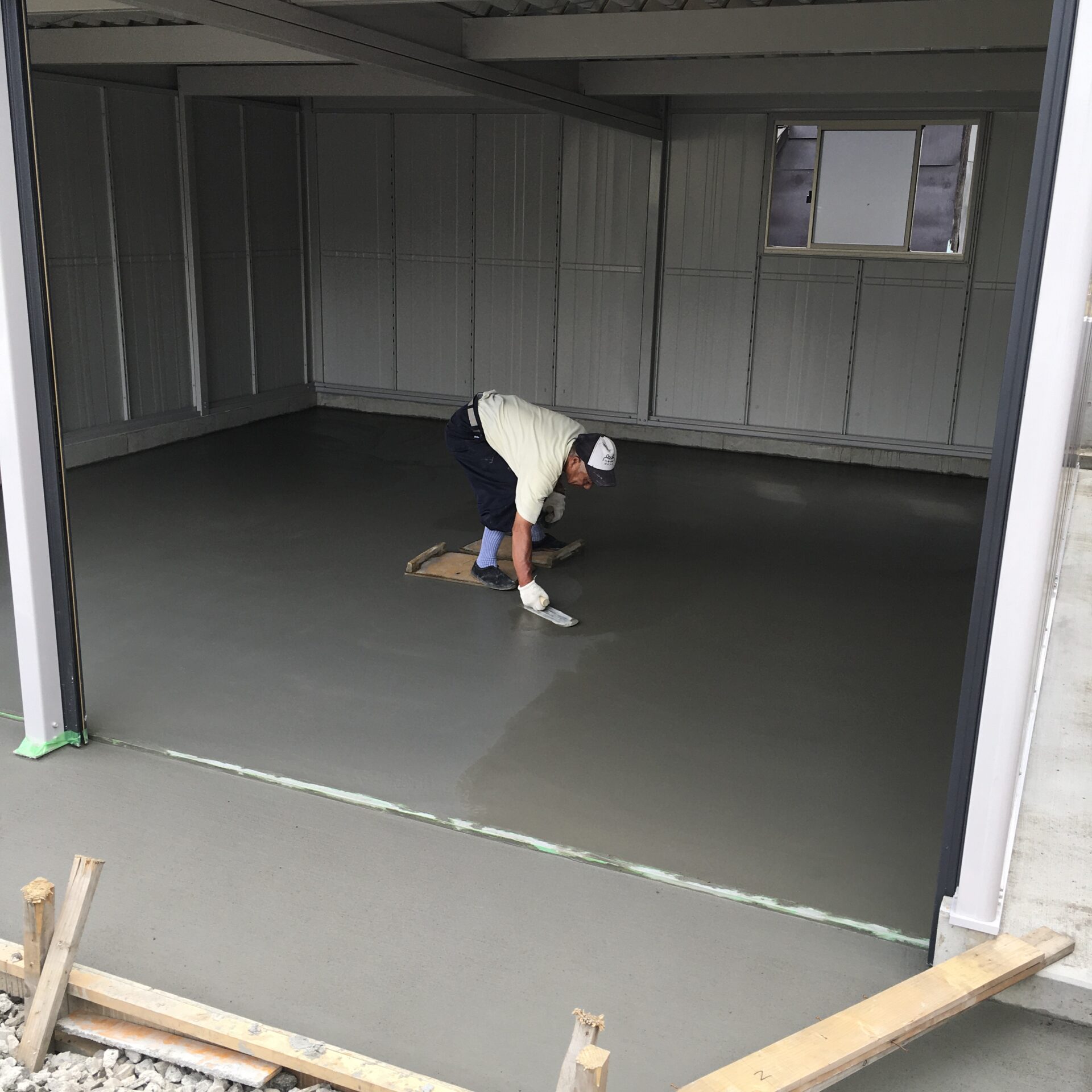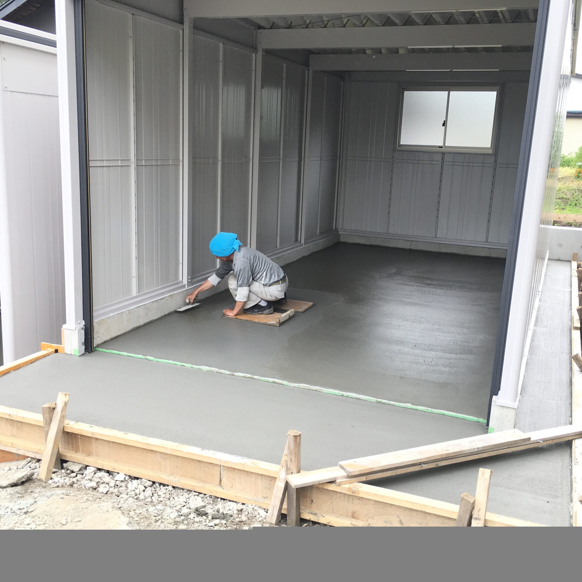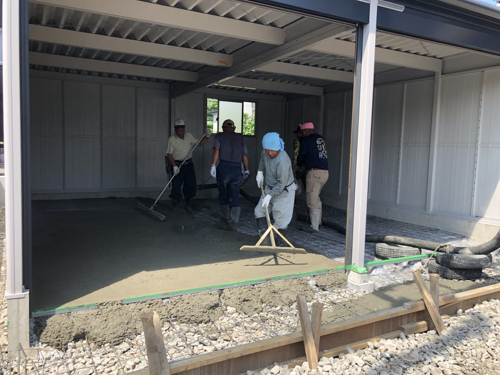 今日は晴天🌞早速コンクリートを流しいれ、打設完了。その後は、左官屋さんにきれいに仕上げをしていただきました。